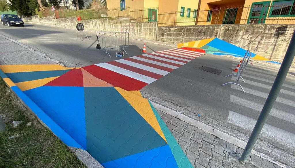 As primeiras faixas de pedestres coloridas foram feitas próximas de escolas, mas com o apoio da prefeitura devem ganhar outras ruas de Campobasso.
