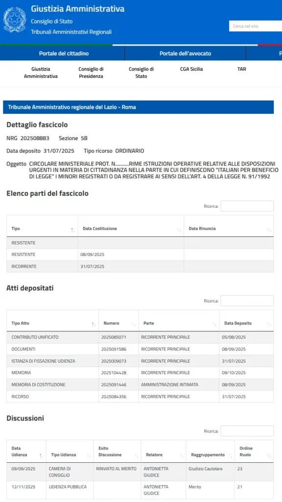 No próximo dia 12 de novembro, o Tribunal Administrativo Regional do Lácio (TAR Lazio), em Roma, julgará um recurso contra a circular n.º 26185, emitida pelo Ministério do Interior em 28 de maio de 2025.
