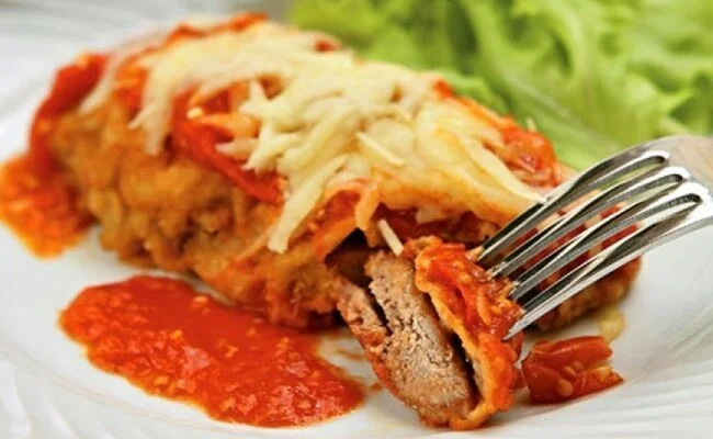 Na Itália, o máximo que você vai encontrar é o cotoletta alla milanese (bife à milanesa, mas feito com uma bisteca suína) e a parmigiana di melanzane (berinjela à parmigiana), feita em fatias dispostas em camadas, regada com molho de tomate e salpicada com queijo parmesão. Muito tradicional nas regiões da Sicília, Nápoles e, claro, Parma, na Emilia-Romana (terra natal do queijo parmesão).