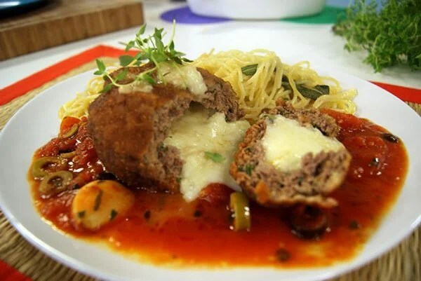 Outra recriação totalmente brasileira é o polpetone. Na Itália, ele é feito no forno, não é frito como no Brasil, e não tem o excesso de molho.