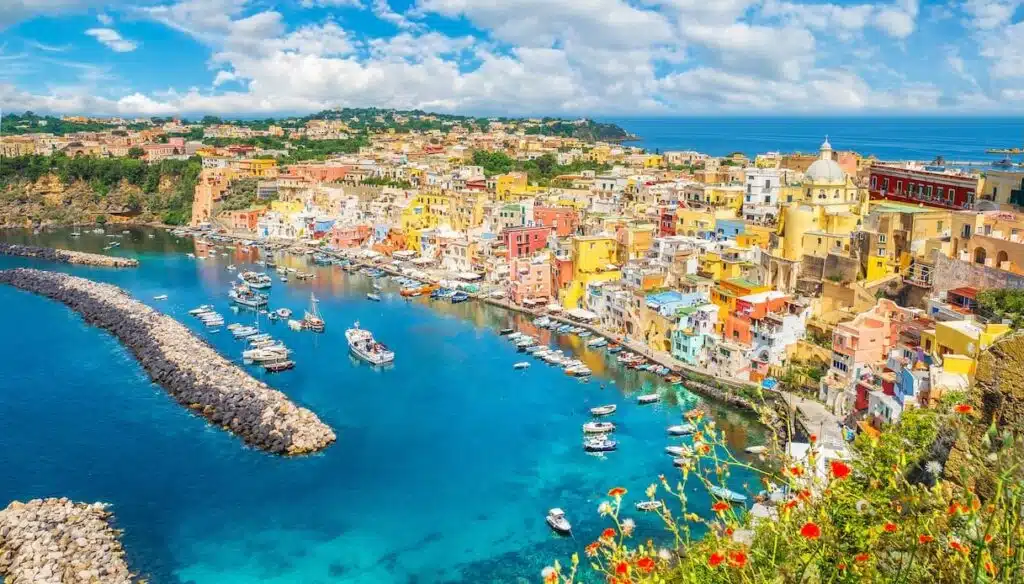 Al 19° posto si trova Procida, isola del Golfo di Napoli caratterizzata da case color pastello e piccole calette.
