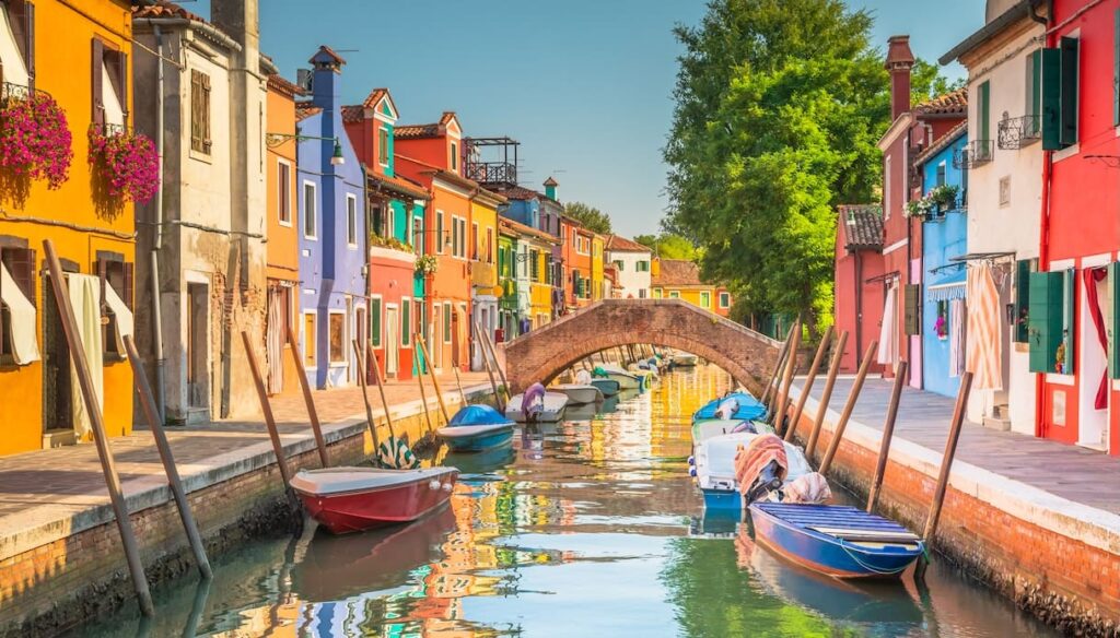 Em 8º lugar aparece Burano, ilha da lagoa de Veneza famosa pelas casas coloridas.