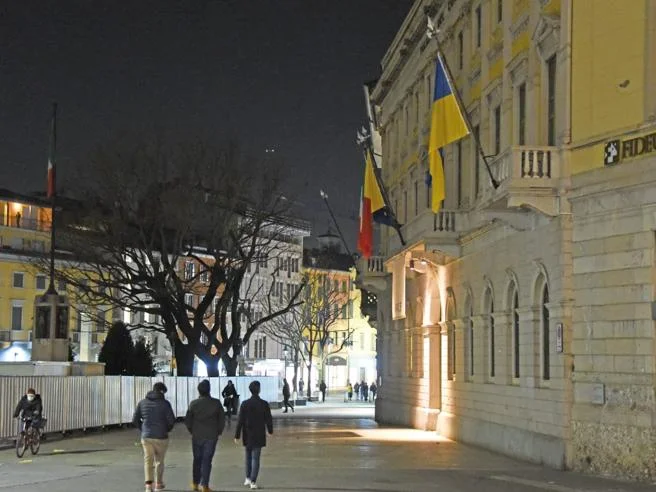 Já em Bergamo, a bandeira ucraniana foi erguida na Câmara Municipal. As cores da Ucrânia também podem ser vistas em Palermo.
