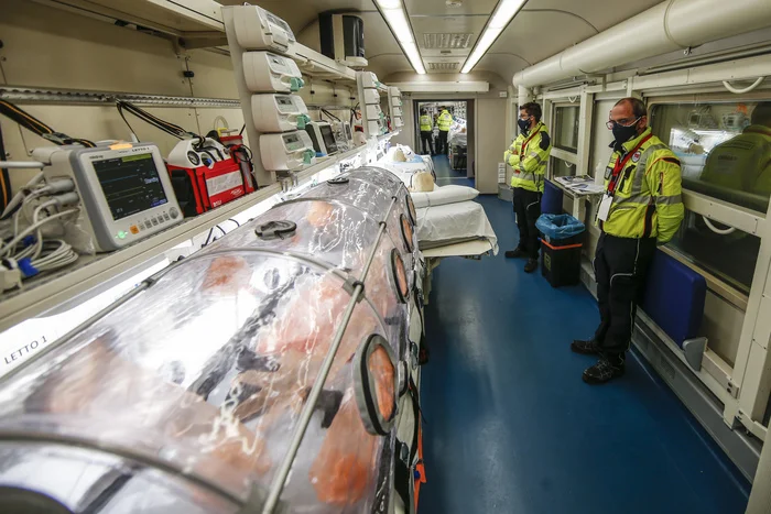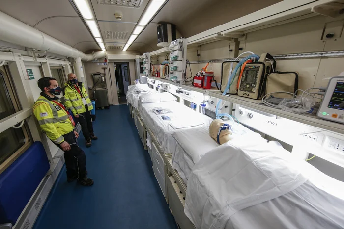 Segundo Batisti, não é apenas um trem com leitos. Todo o interior foi modificado para que ele funcione realmente como um hospital sobre trilhos, em uma colaboração entre a agência de Proteção Civil, a Cruz Vermelha e a Agência de Emergências da Lombardia.