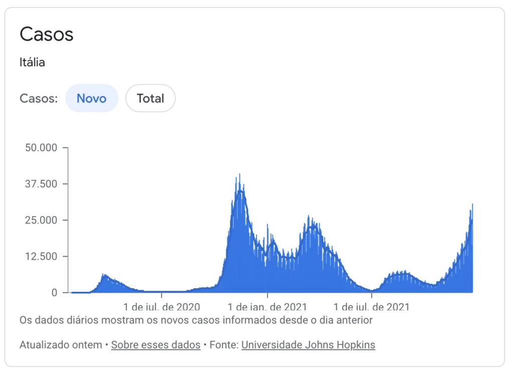 A Itália registrou 36.293 novos casos de Covid-19, totalizando 5.472.469 contágios, informou o boletim diário do Ministério da Saúde.