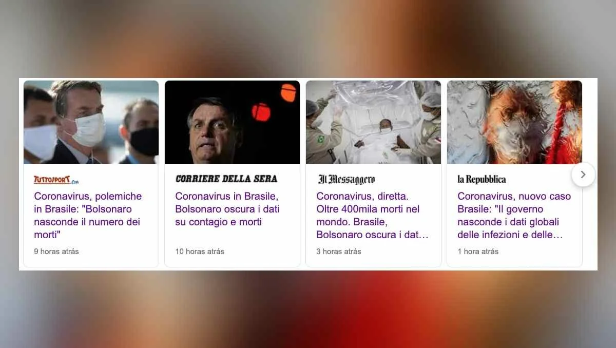 Já a versão italiana do Yahoo Notícias publicou que “Bolsonaro obscurece os dados sobre coronavírus e protesto explode”.