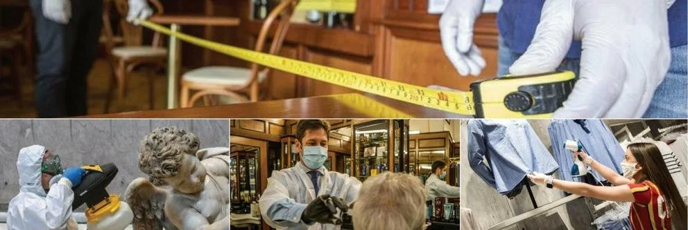 No restaurante, a regra básica é a distância de dois metros entre uma mesa e outra, enquanto entre um acompanhante e outro, deve ser mantida “uma distância capaz de evitar a transmissão de gotículas”.