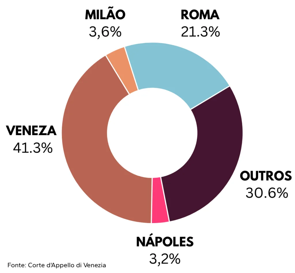 O Vêneto concentra 41,3% dos processos de cidadania italiana do país. A região tem um vínculo histórico com os descendentes de italianos que emigraram para o Brasil no final do século XIX.