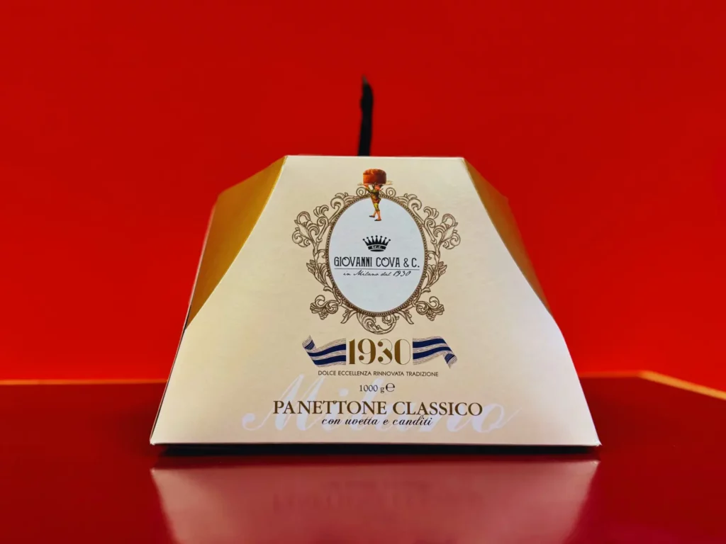 O panetone da Giovanni Cova e C. segue o estilo piemontês, sem cobertura e com massa de alvéolos pequenos. Destaca-se pela presença generosa de frutas cristalizadas como laranja, limão e cidra.